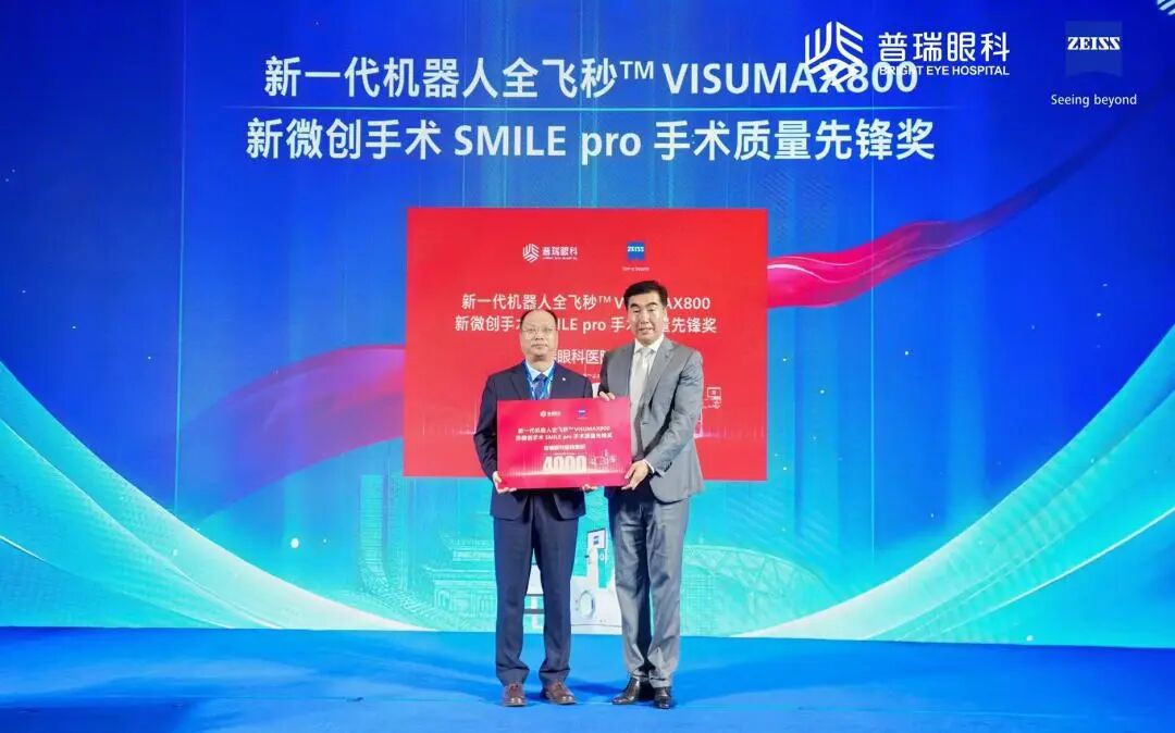 今年,普瑞眼科迎來成立20週年的重要時刻,屈光專科亦屢創佳績。近日,蔡司公司不僅授予普瑞眼科“全普瑞全飛秒TM微創手術示範單位”稱號,還爲集團頒發了“新一代機器人全飛秒TM VISUMAX800新微創手術SMILE pro手術質量先鋒獎”及“SMILE pro手術量突破4000例”的獎牌認證——這是對SMILE pro技術卓越性能的肯定,更是普瑞眼科屈光專科20年來堅守技術創新與醫療匠心的生動見證